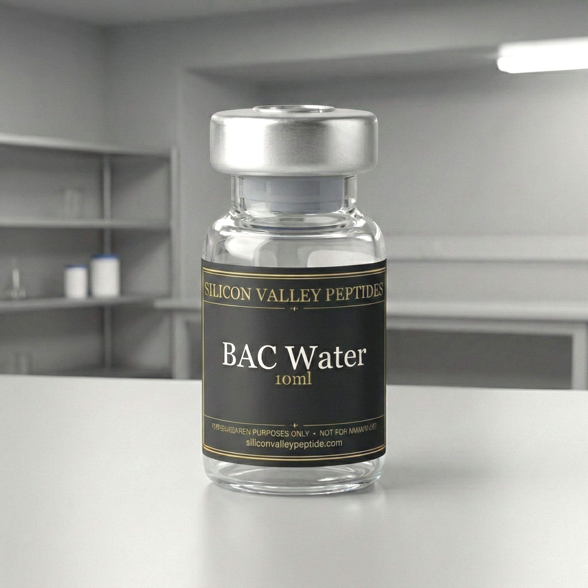 Bacteriostatic water (BAC water) is sterile water containing 0.9% benzyl alcohol as a bacteriostatic preservative. It is the standard diluent for reconstituting lyophilized peptide research compounds.
